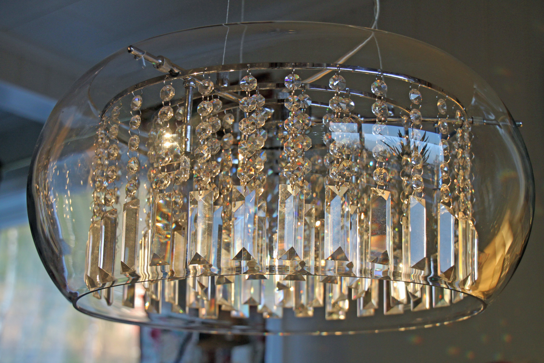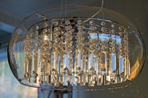 En kan jammen lure litt på hvordan slike ting blir priset… Lampene har forskjellig navn, og er fra forskjellige lampebutikker. Under ser du min lampe. Den heter Sundholmen krystallpendel og kostet kr. 3999,- på Lampe Magasinet på Alnabru. Vi fikk også 10% rabatt på den prisen da vi kjøpte den.