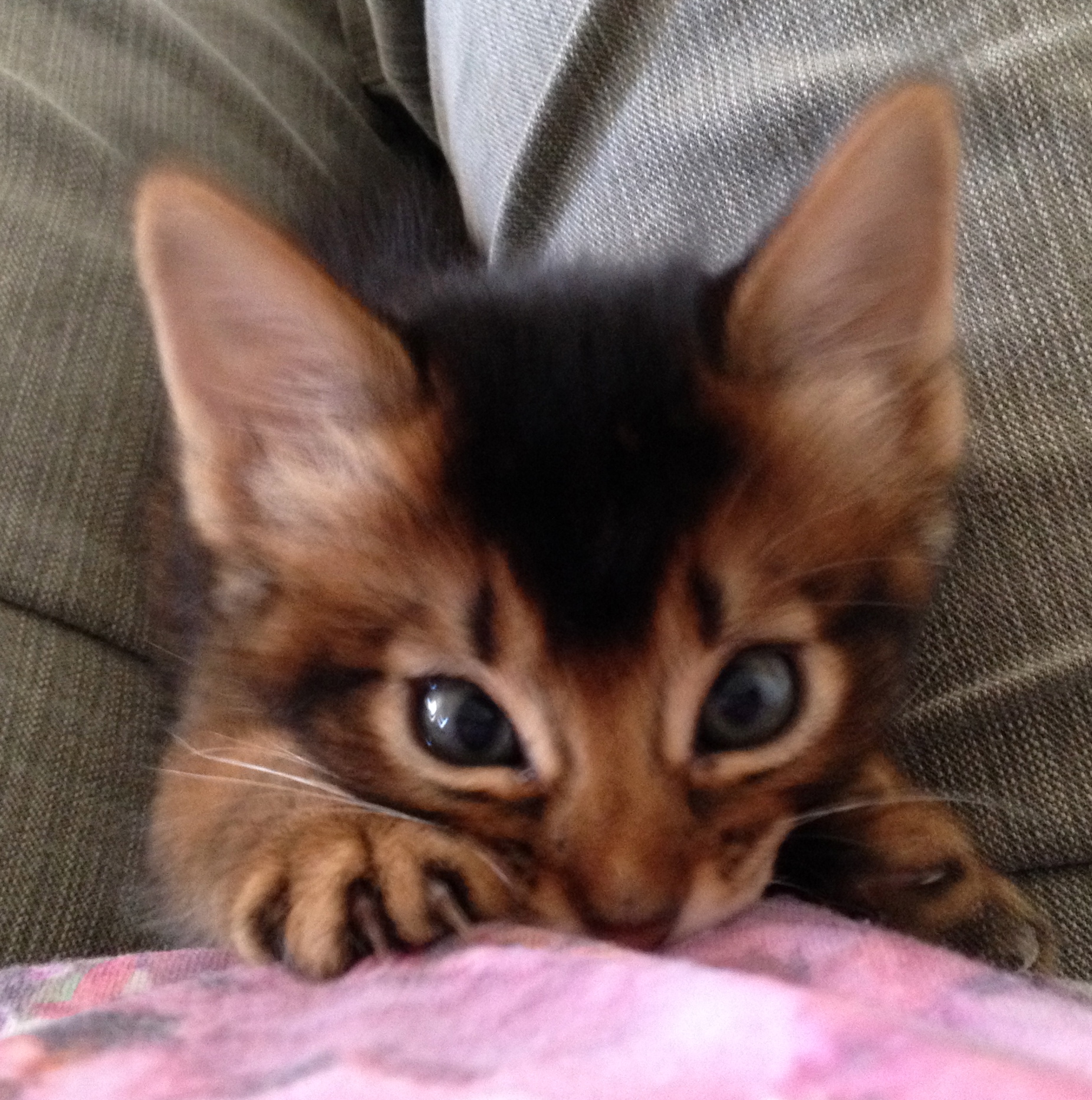 De vil om noen få uker bli DNA-testet for om de bærer PRA-gen eller ikke. Uansett håper jeg at en av dem, eller begge to kan gå i begrenset avl. Slik de ser ut nå er de også trolig lovende utstillingskatter. Jeg har sjeldent hatt, eller sett, så mørke viltfargede som disse to. Det kan tyde på at de får en mørk og varm farge, samt sterk og fin ticking.