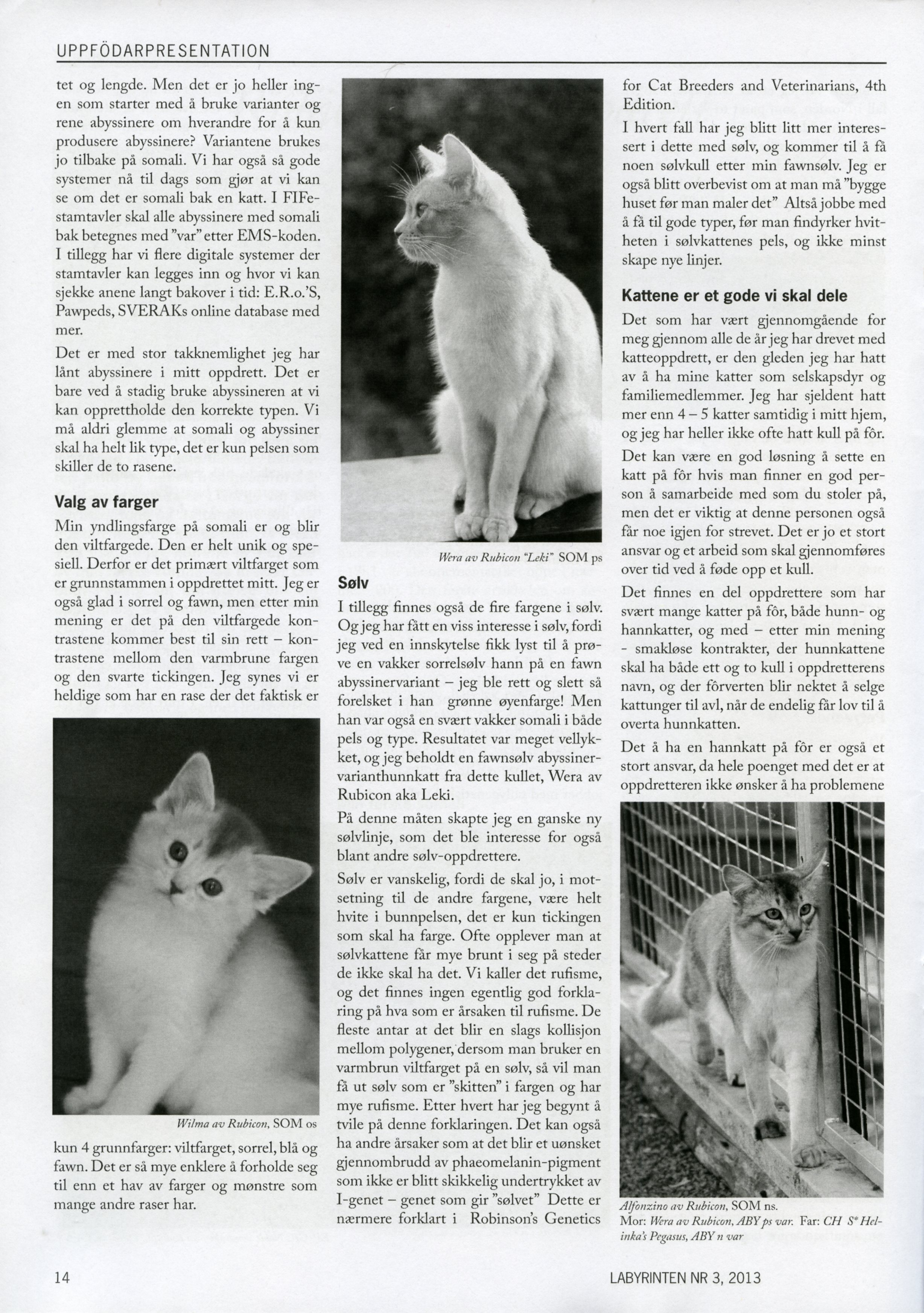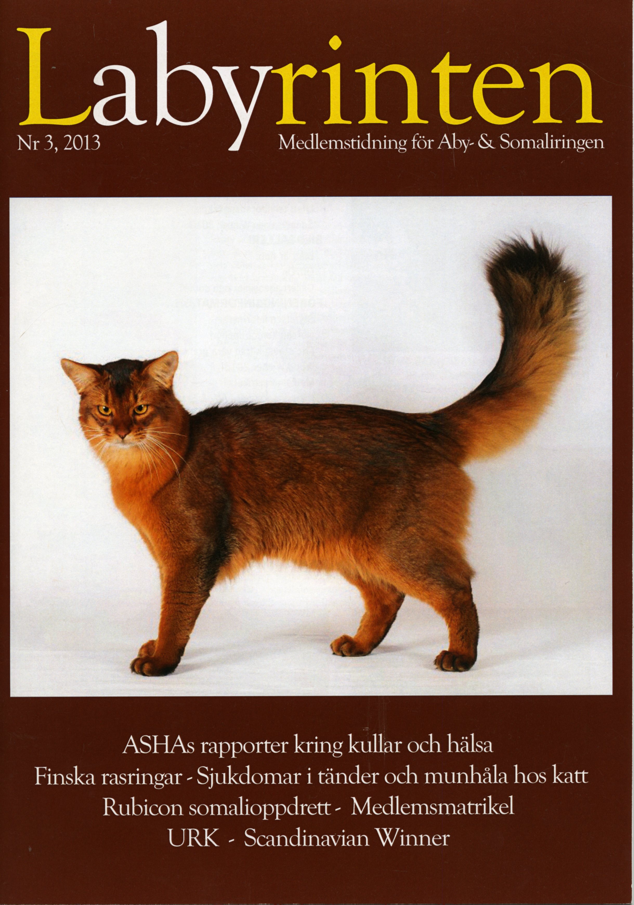 Forsiden av Labyrinten ble prydet av CH Pendragon av Revebo (N) JW, som jo er sønnen til CH S*Helinka’s Pegasus, som er min andre glade kastrat. Pendragon er oppdrettet av Gøran Vinje, eies av Anne Wiker og bor hos fôrvert Lilly Oversand Deildok. En utrolig vakker representant for somalirasen som allerede har gjort det helt fabelaktig på utstillinger.