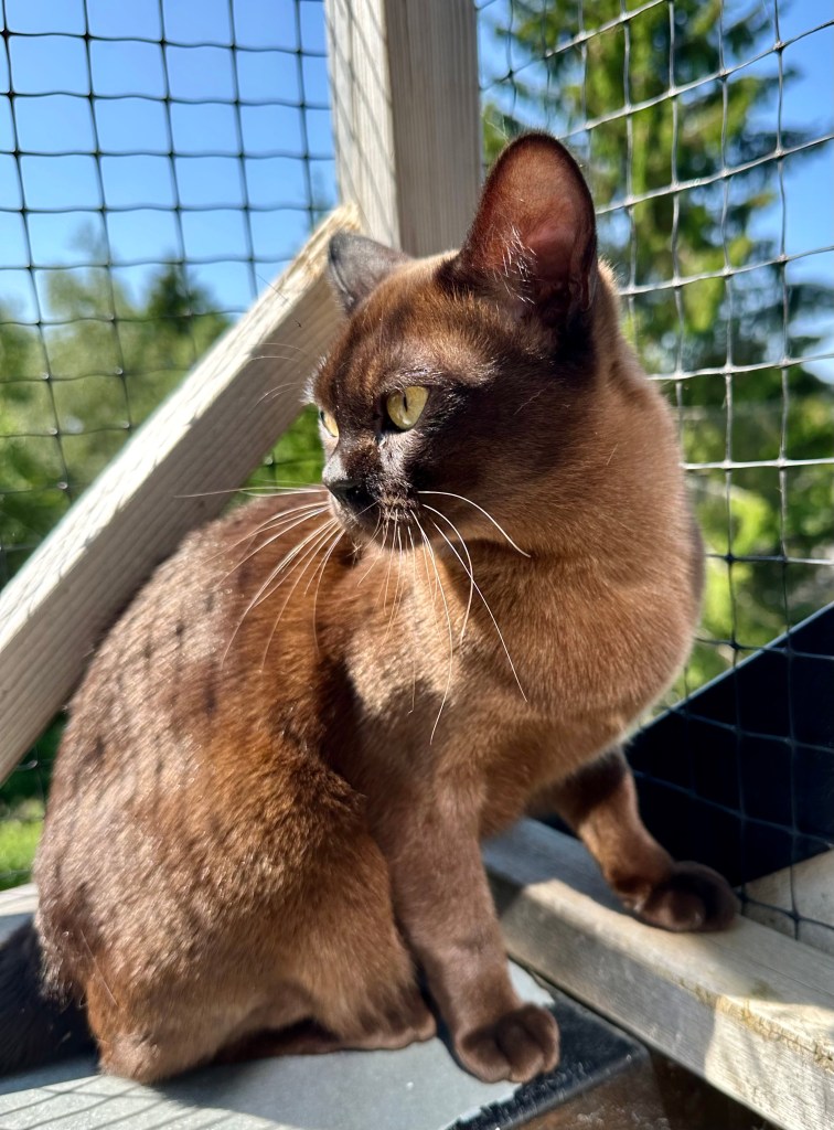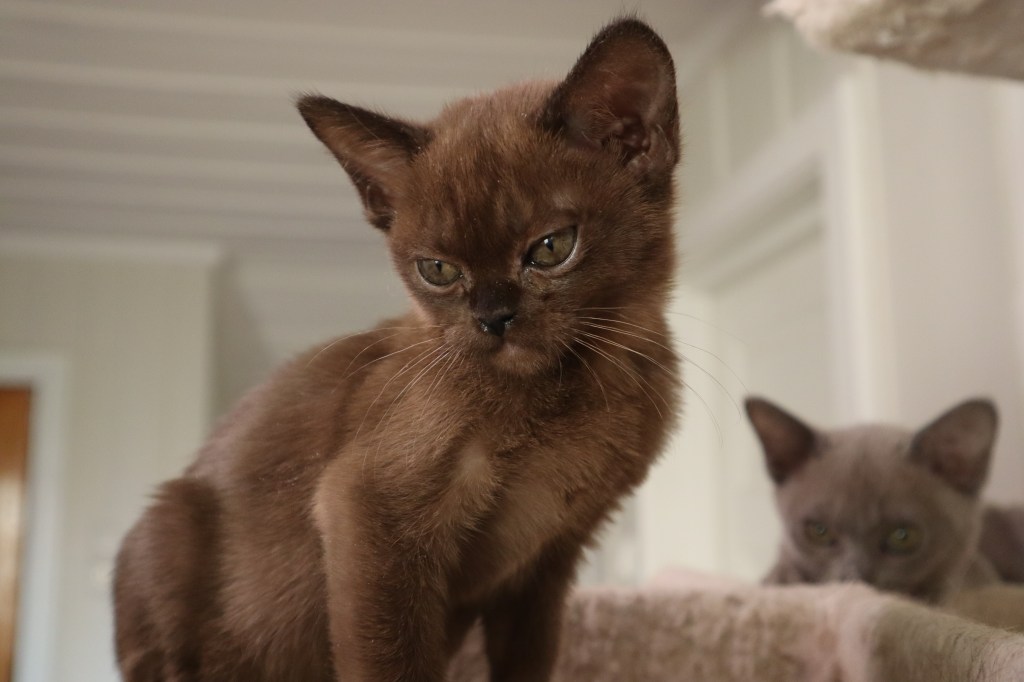 Også vakre PR NO*Shining Beauty’s Ariel er en del av gjengen – hun har gjort det bra på utstillinger, og er mannen i husets yndlingskatt. Min første burma som jeg kjøpte i 2020, CH (N) Kattehula’s Godiva, har fått flytte til et nytt hjem, og lever som en dronning der.