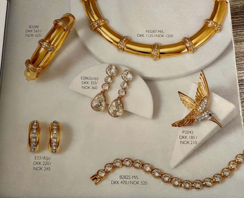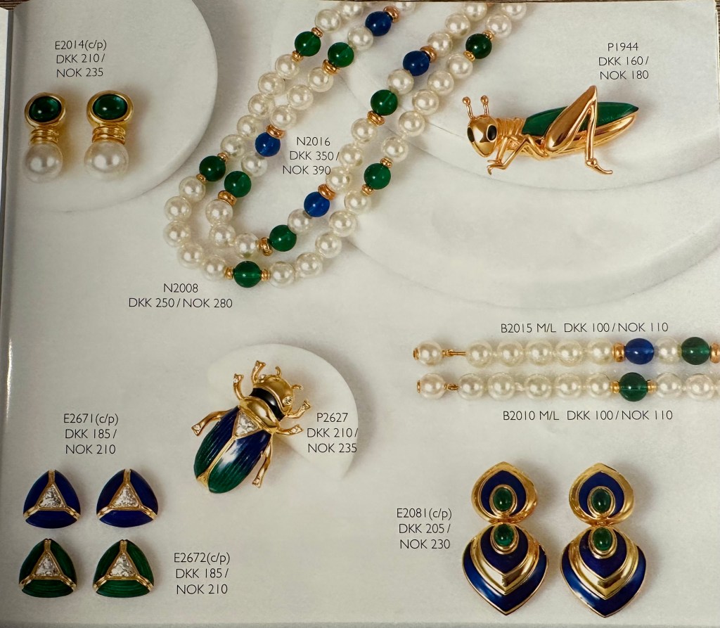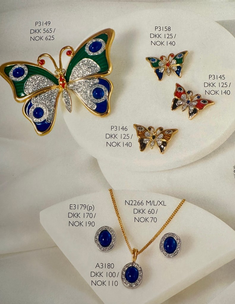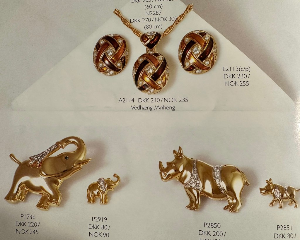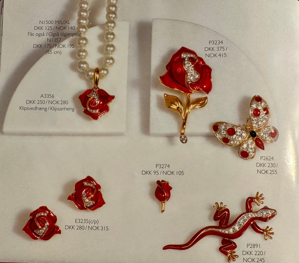 Jeg har ofte lurt på hvor selve firmaet holdt til og hvor de produserte smykkene. I den ene katalogen jeg har tatt vare på så står det en adresse i Danmark og en i Norge. Limfiordsvej 45 A, 2720 Vanløse, Danmark, og Henrik Ibsensgate 7 (inngang Møllergaten), 0179 Oslo, Norge. Jeg besøkte aldri denne adressen i Oslo den gangen jeg var aktiv med Cabouchon, men vi selgere ble invitert en gang årlig til en hyggelig samling med god mat på et hotell i Oslo, der jeg møtte flere andre selgere. Jeg husker det da var flere som konkurrerte i å henge på seg flest mulig av de store, glitrende brosjene.