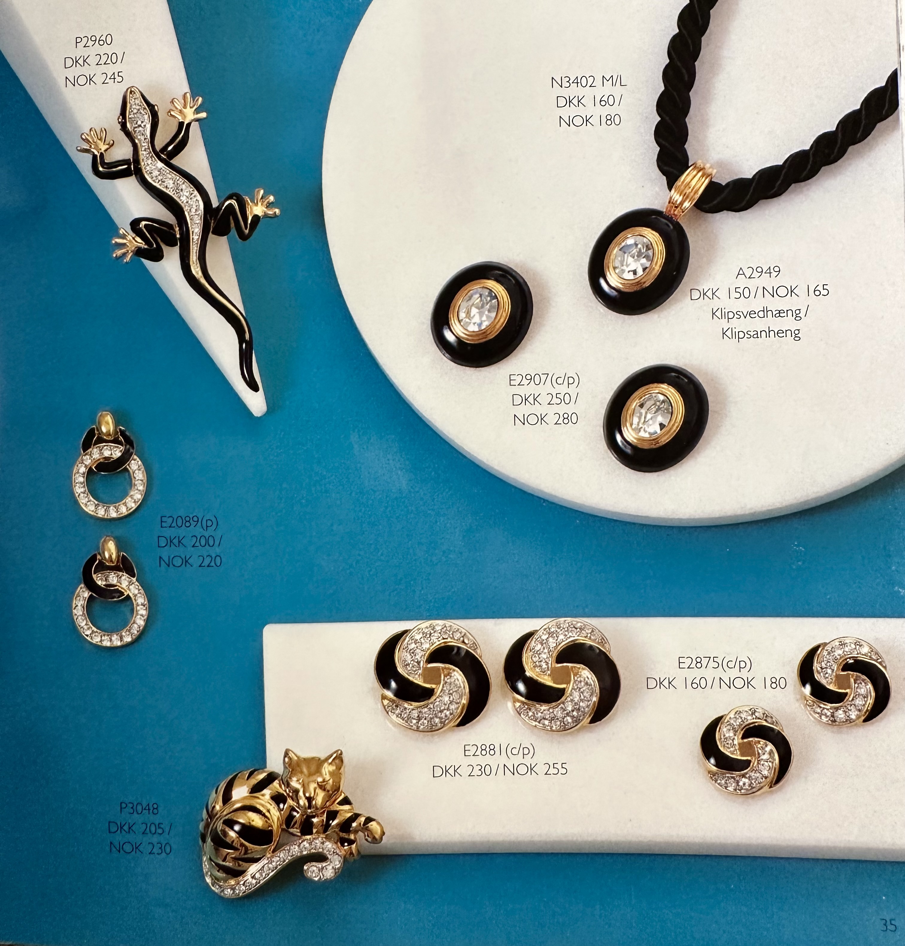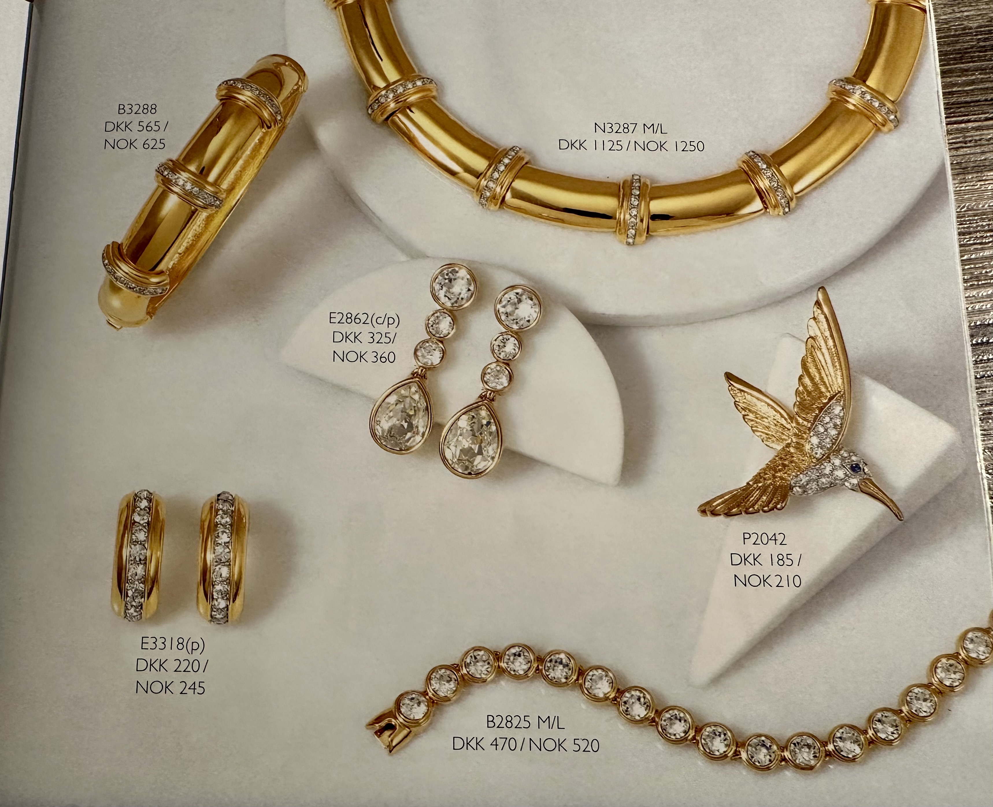 Smykkene var som sagt store og glitrende, belagt med 18 karat gull, sølv eller rhodium. Smykkene var også nikkelfrie og allergikere kunne tåle dem. Det var mye krystaller og emalje i sterke farger. Det var særlig store brosjer som forestilte diverse dyr. De var veldig populære.