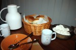 Det som reddet meg var frokosten på hotellet. Der var det rikelig med bacon, og fete frokostpølser, og «scrambled eggs» – eggerøre.  Så jeg pøste på med ekstra smør – som de heldigvis hadde, for ost var det svært lite av. Det ble jo litt ensformig i lengden, men det var OK. Man kunne også få egendefinert «omelett» med diverse innhold, men røren de brukte så svært hvetemel-tykk ut, så det prøvde jeg ikke. Cluet var å få i meg så mye fett som mulig til frokost, slik at jeg holdt meg mett lenge utover dagen, og det fungerte fint. Da kunne jeg godt spise en hamburger til neste måltid, uten å spise noe særlig av brødet eller pommes frites.