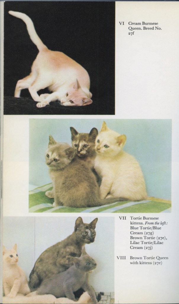 Betatt av burmeseren Jeg var 20 år i 1976, og ble helt betatt av rasekattoppdrett, og burmeser spesielt. Jeg skaffet meg boken The Burmese Cat, av forfatterne Robine Pocock, Dorothy Silkstone Richards, Moira Swift og Vic Watson. Boken var ny i 1975 utgitt av B. T. Batsford Ltd i London og Sidney. Dette ble min bibel, studert i flerfoldige timer – min engelsk var ikke så god den gang, men jeg fant ut det meste som sto der. Boken er fortsatt med meg, og nå til ny gjennomgang! Fortsatt har boken stor aktualitet og viktig informasjon, særlig om burmeserens historie, men også var det her jeg lærte meg det meste av grunnleggende genetikk. Det var i denne boken jeg så de første fargebildene av de ”nye” burmeserfargene, som rødt, creme, skilpaddefarget og ikke minst lilla og sjokolade.