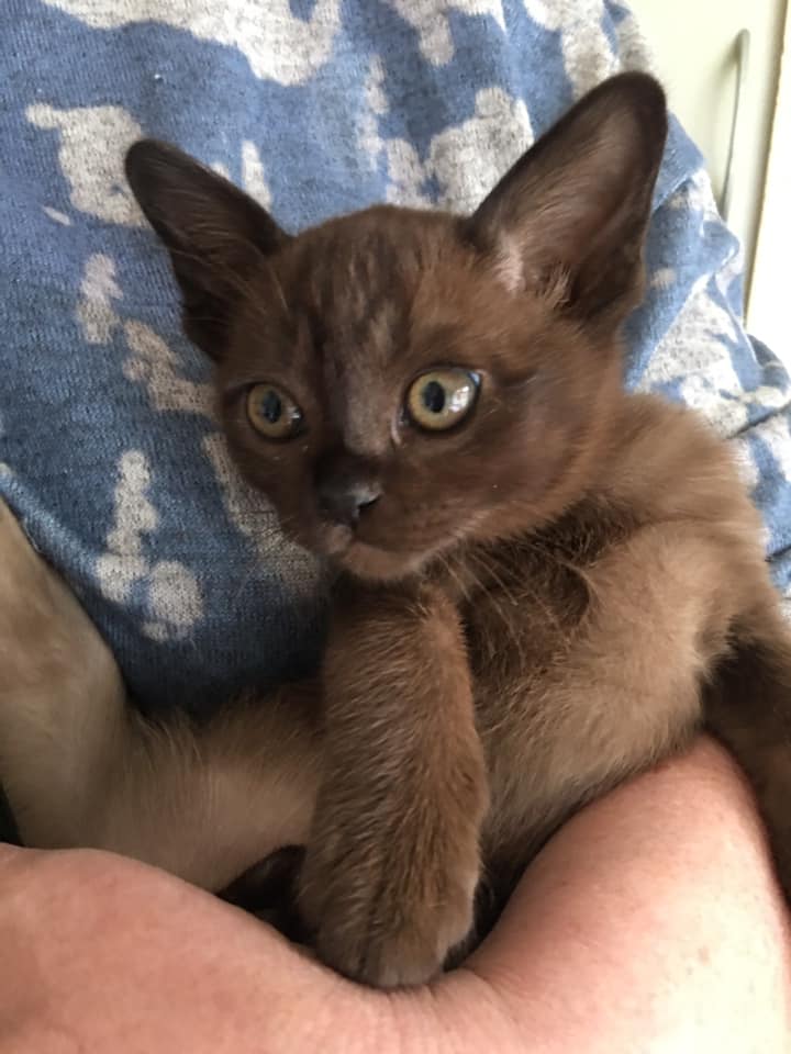 Ny burmeser i 2020! Så kom koronatiden i 2020, og jeg oppdaget det nydelige kullet til Irene Antonsen, med seks brune burmesere. Da var tiden inne for å skaffe seg en burmeser igjen! Og jammen var jeg heldig og fikk kjøpe vakre, skjønne, brune (N)Kattehula’s Godiva! Endelig kom det en ny burmeser inn i mitt hjem igjen! Hun har et helt fantastisk gemytt og har allerede blitt hele familiens kjæledegge! Mine to døtre, som jo er vokst opp med burmesere, var helt over seg av begeistring og minnes sin barndom med flere vakre og kosete burmesere.
