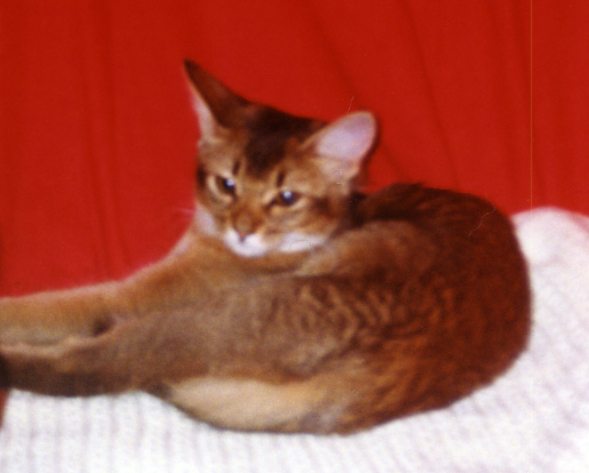 Lamborghini av Rubicon, ABY n var, as a kitten. He was born 22.08.2000. He was the father of Noble Pendragon av Rubicon. Unfortunately this is possibly one of very few picures of him. Sire: Thamos Ramfis, ABY n. Dam: Habanita av Rubicon, SOM n