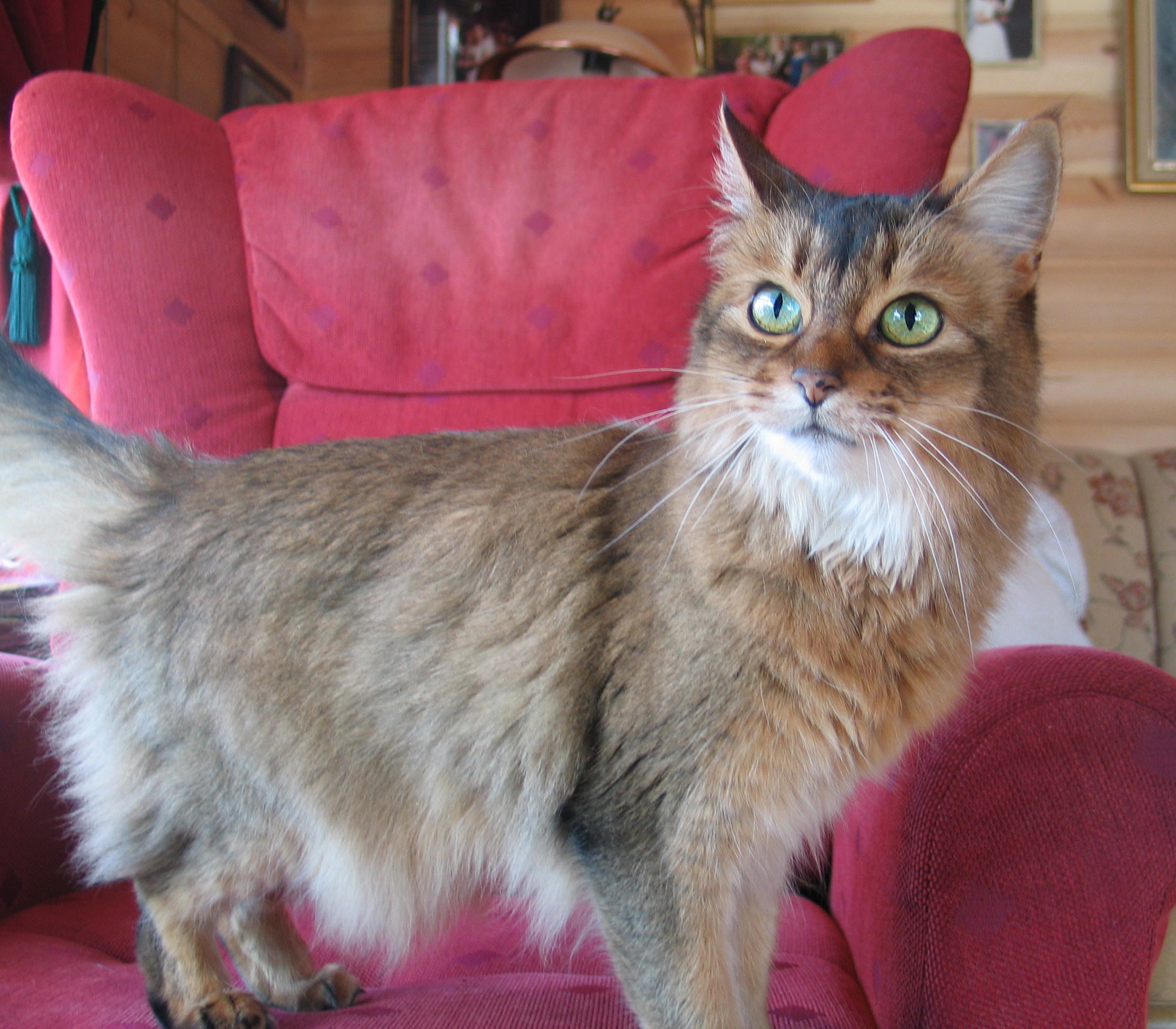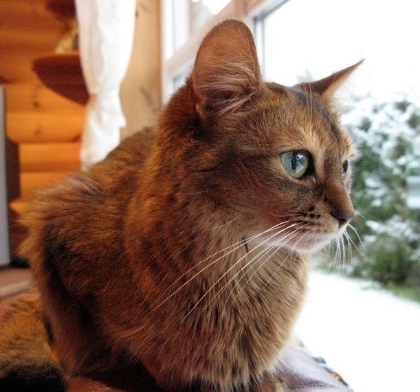Madonna av Revebo (N), viltfarget somali. Født 23.10.2009 – død 29.07.2011. Far: S*Anshara Zoleil Fox, SOM n. Mor: SC S*Windjammer’s Lollipop, SOM n. Oppdretter Gøran Vinje