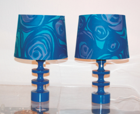 Jeg får mer og mer sansen for flott design fra 1960- og -70-tallet. Stilige former og sterke farger. Har du en slik lampe som bare ligger og slenger på loftet, så er jeg ganske interessert! Jeg har også funnet et bilde av lampen i blått, men altså den grønne…