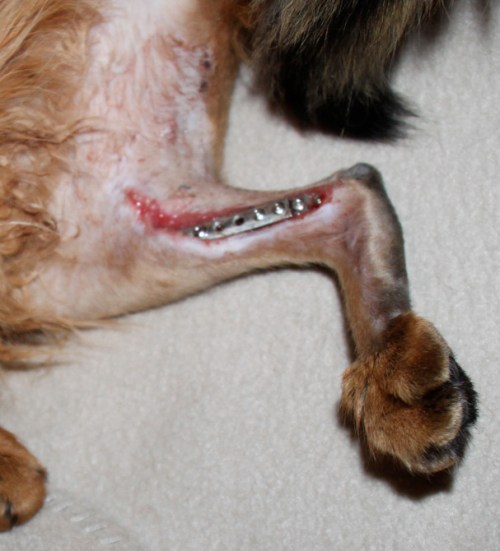 Tirsdag 26. juli var hun på nytt hos Oslo Dyreklinikk og tok røntgen. Det ble da besluttet at titanpinnen som var festet til beinet hennes kunne fjernes. Veterinæren mente at beinbruddet var ganske godt grodd, men at det fortsatt ville være svakheter på grunn av infeksjoner og de nye hullene der de tynne pinnene sto inn i beinet hennes.
