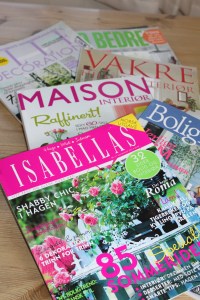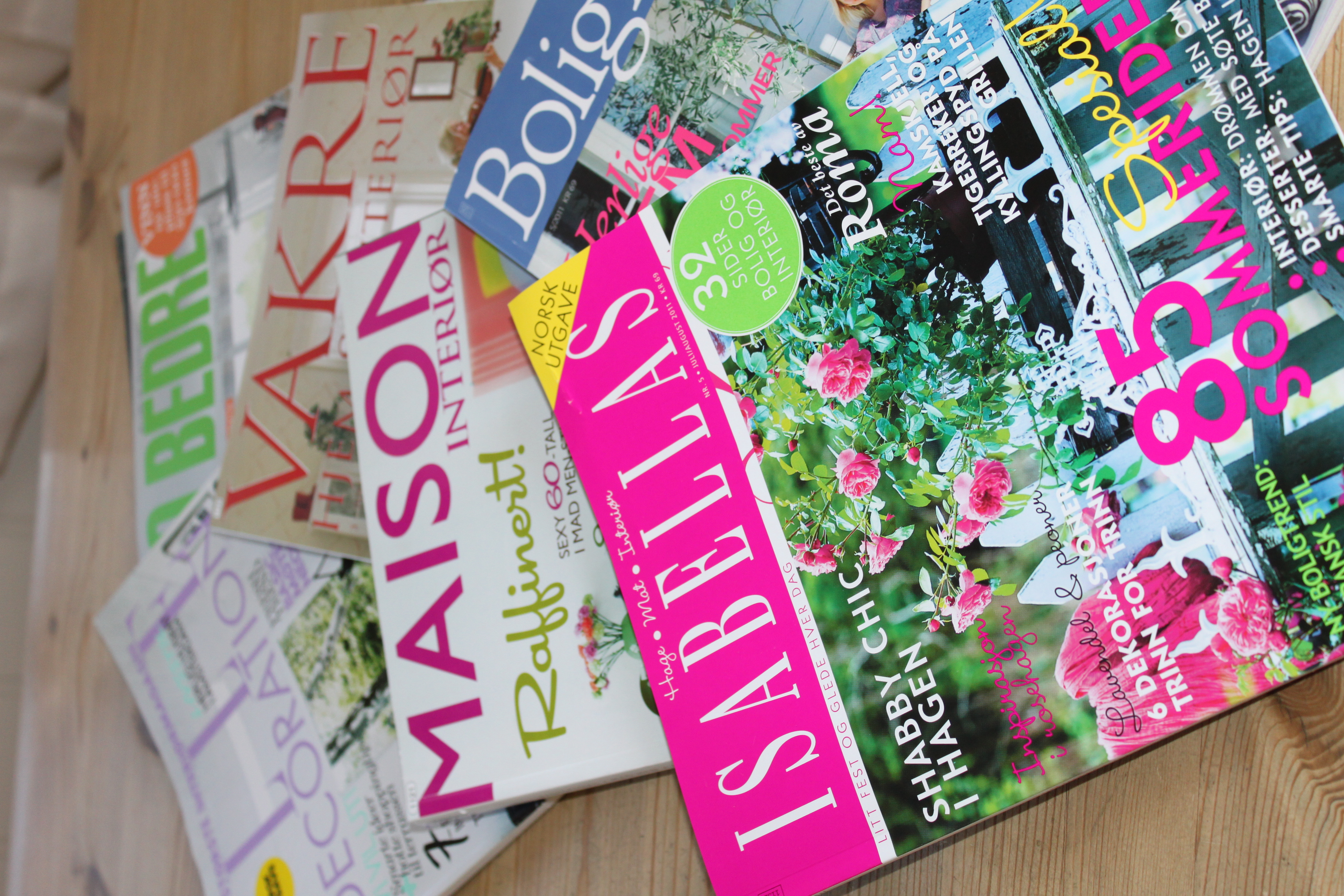Selv har jeg gitt meg med å kjøpe nye interiørmagasiner, men jeg har beholdt mye jeg tidligere har kjøpt. Det kan være artig å bla litt rundt i dem etter hvert som en glemmer dem. Men jeg synes ikke det er noen vits i å kjøpe nye magasiner hele tiden… Og så sitter jeg å venter på en større variasjon og mer interessante artikler i disse magasinene 🙂