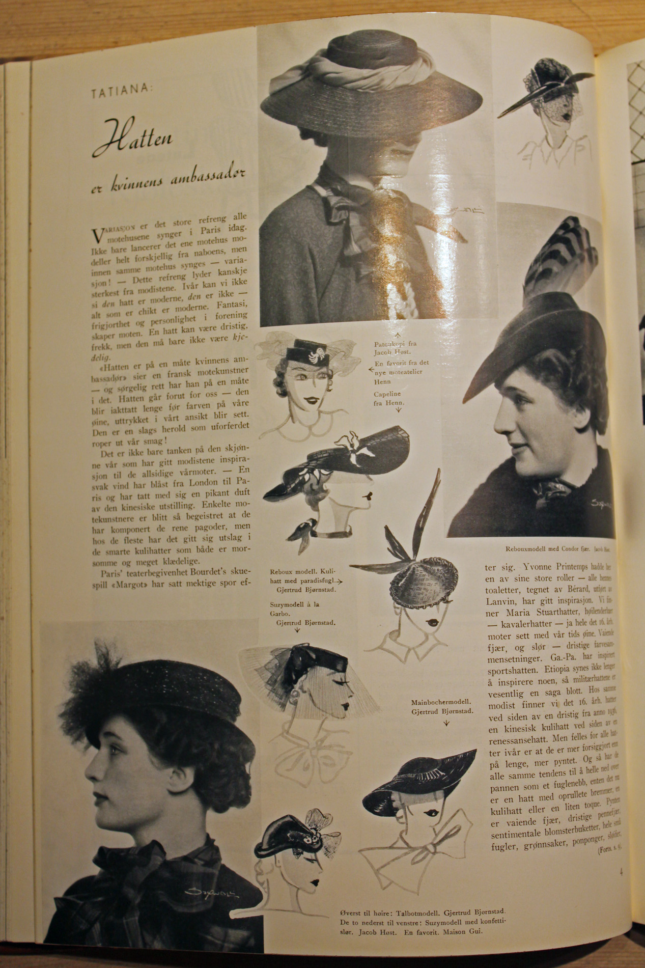Stilen den gang var meget elegant med hatter og striglete frisyrer. Trolig var det dyrt å kjøpe ferdige kreasjoner slik det vises på bilder i bladet. De fleste var nok nødt til å sy og strikke selv. Magasinet har mye stoff for de nevenyttige.