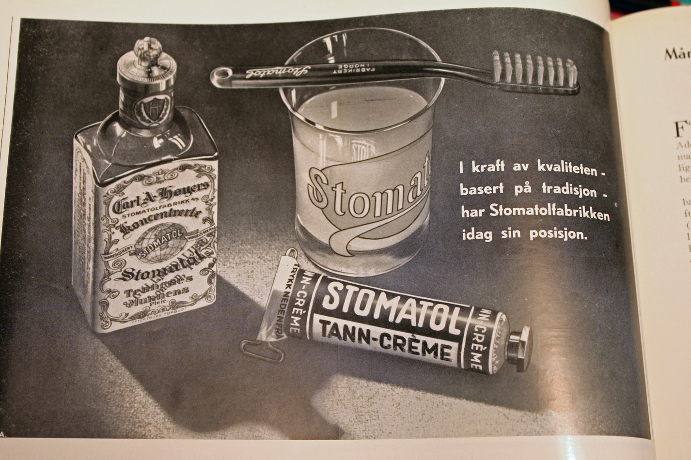 Det er morsomt å lese reklameinnslagene i bladet. Her finner man varer og merker som ikke finnes mer, men også klassikere som fortsatt er i handelen. Noen butikker eller varemagasin var tilstede den gang, som Glassmagasinet og Sten & Strøm i Oslo.