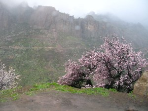 Mandeltre i blomstring oppe i fjellet på Gran Canaria.