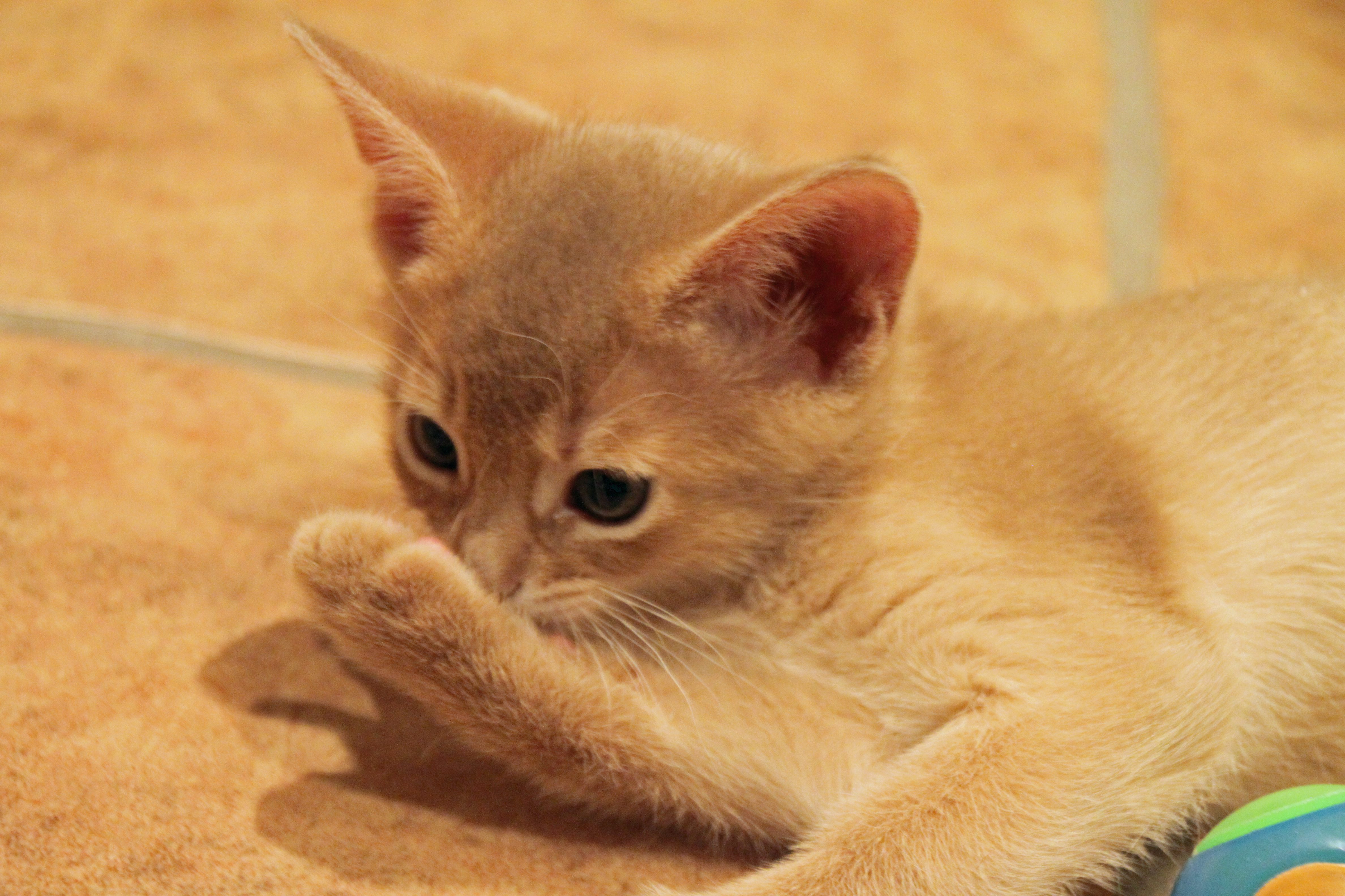 Sorrel abyssiner hann til salgs: Han er den største i kullet, og har nesten ekstremt flott øreplasserng! Han er svært mørk i sorrelfargen, og han har noen markeringer/striper på innsiden av forbena og på magen, samt halsbånd. Han vil også bli testet for langhårsgenet. Jeg tror han kan være bærer av langhår/somali.