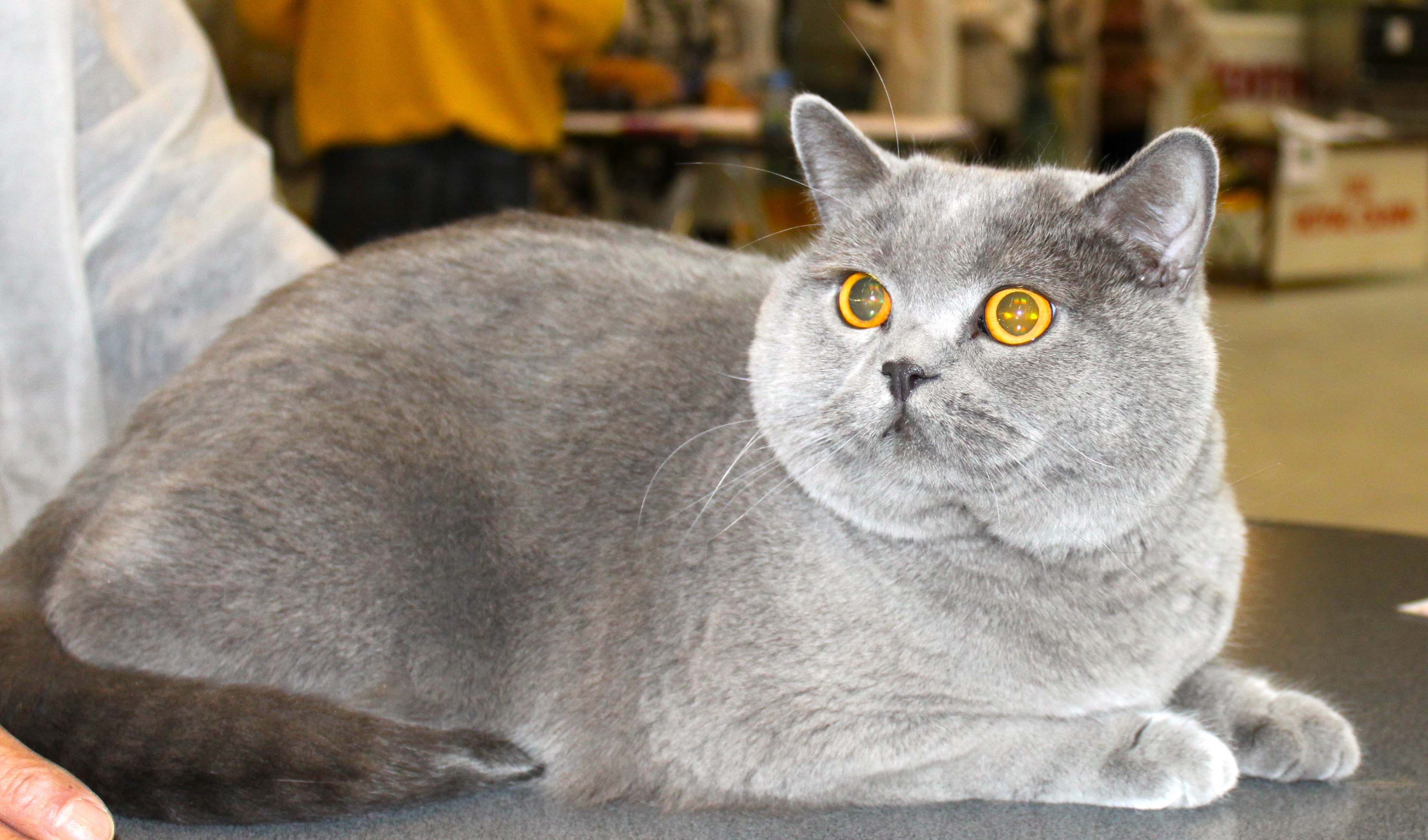 Først på 1800-tallet skjer en mirakuløs forandring i det britiske folks oppfatning av katten. Den første organiserte katteutstilling finner sted i London i 1871. Blant de luksuriøst pelsete langhårskattene, ledsaget av vestens første glimt av den sjeldne siamesiske katt, tronet den blå, britisk korthårskatten med sin praktfulle pels. En farge som kunne beskrives som tordenskygrå nedtonet med blek lavendel. Pelsfargen var sjelden og ble lagt merke til.