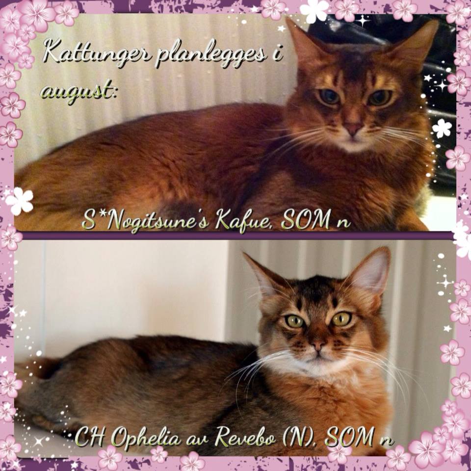 Kullet består av 4 kattunger, de to sølv-kattene er solgt og skal gå videre i avl. De to uten sølv ser lovende ut, og jeg selger dem uten restriksjoner for avl og utstilling. Kattungene er svært godt sosialiserte, renslige og svært kjælne. Abyssiner og somali er svært vakre raser med en spennende historie.