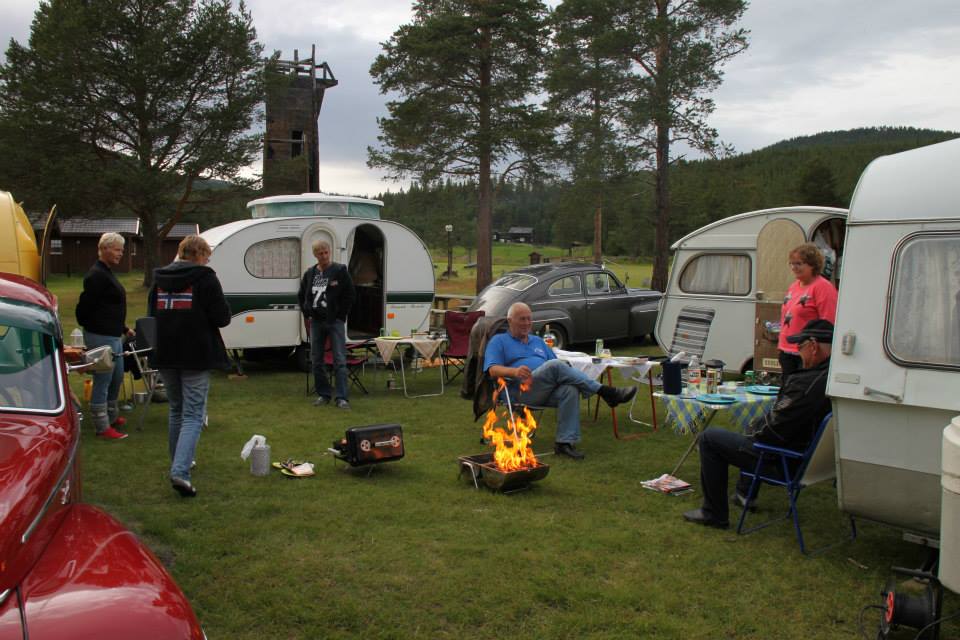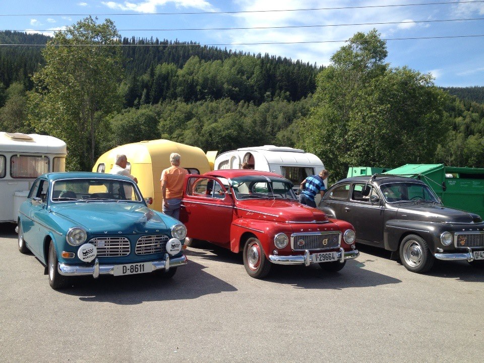 Da var det endelig klart for vår årlige veterancampingtur med gode venner, og det årlige Landstreffet til Norsk Volvo PV Klubb, som ble avholdt på Kinsarvik camping i Hardanger. Men altså: Først reiste vi til Ytterøya i Trøndelag for å besøke Helge og Laila. Det var Wenche og Knut, Asbjørn og Tove, samt oss selv, som la ut på ferden i våre herlige gamle biler og retro campingvogner.