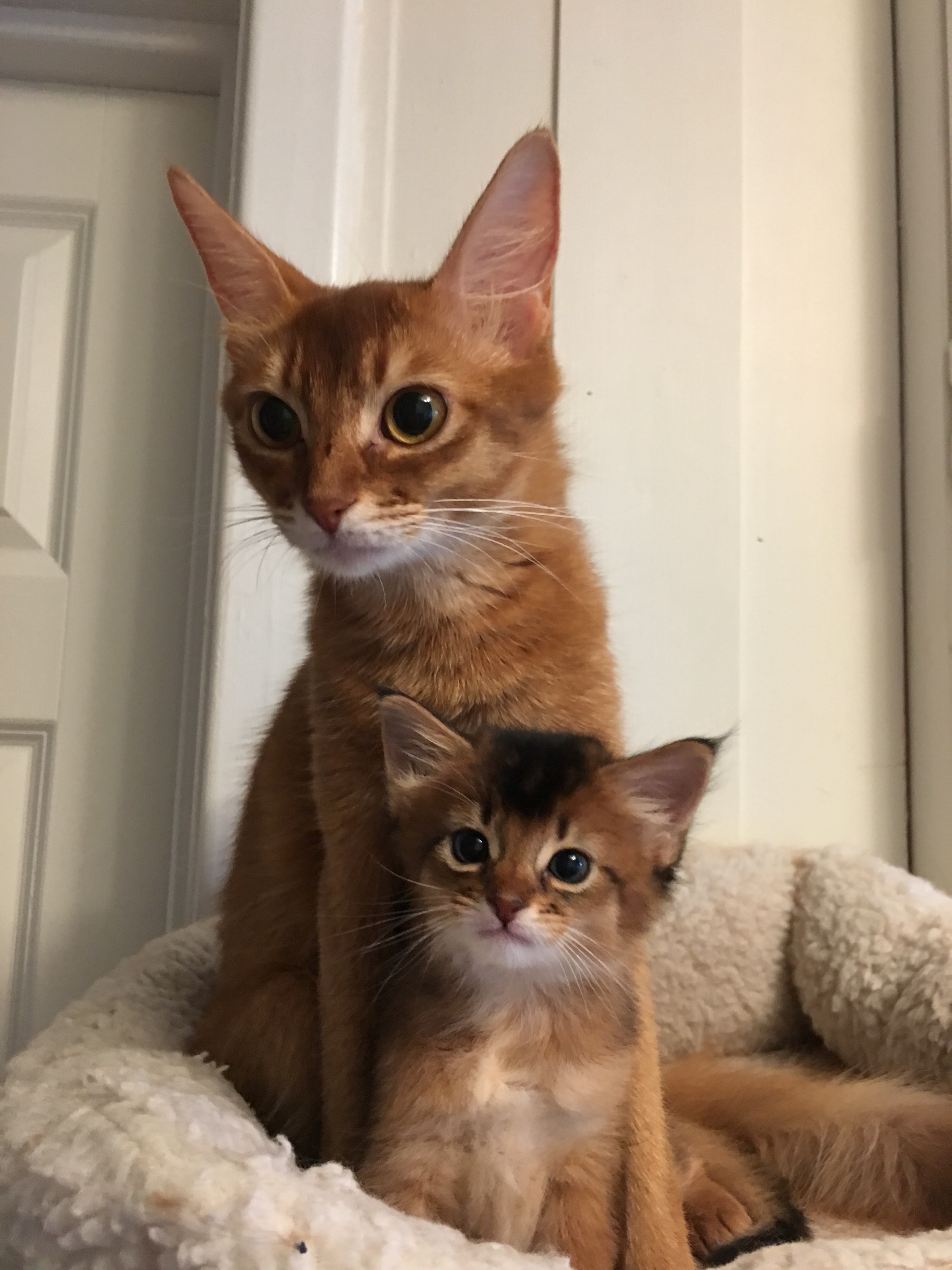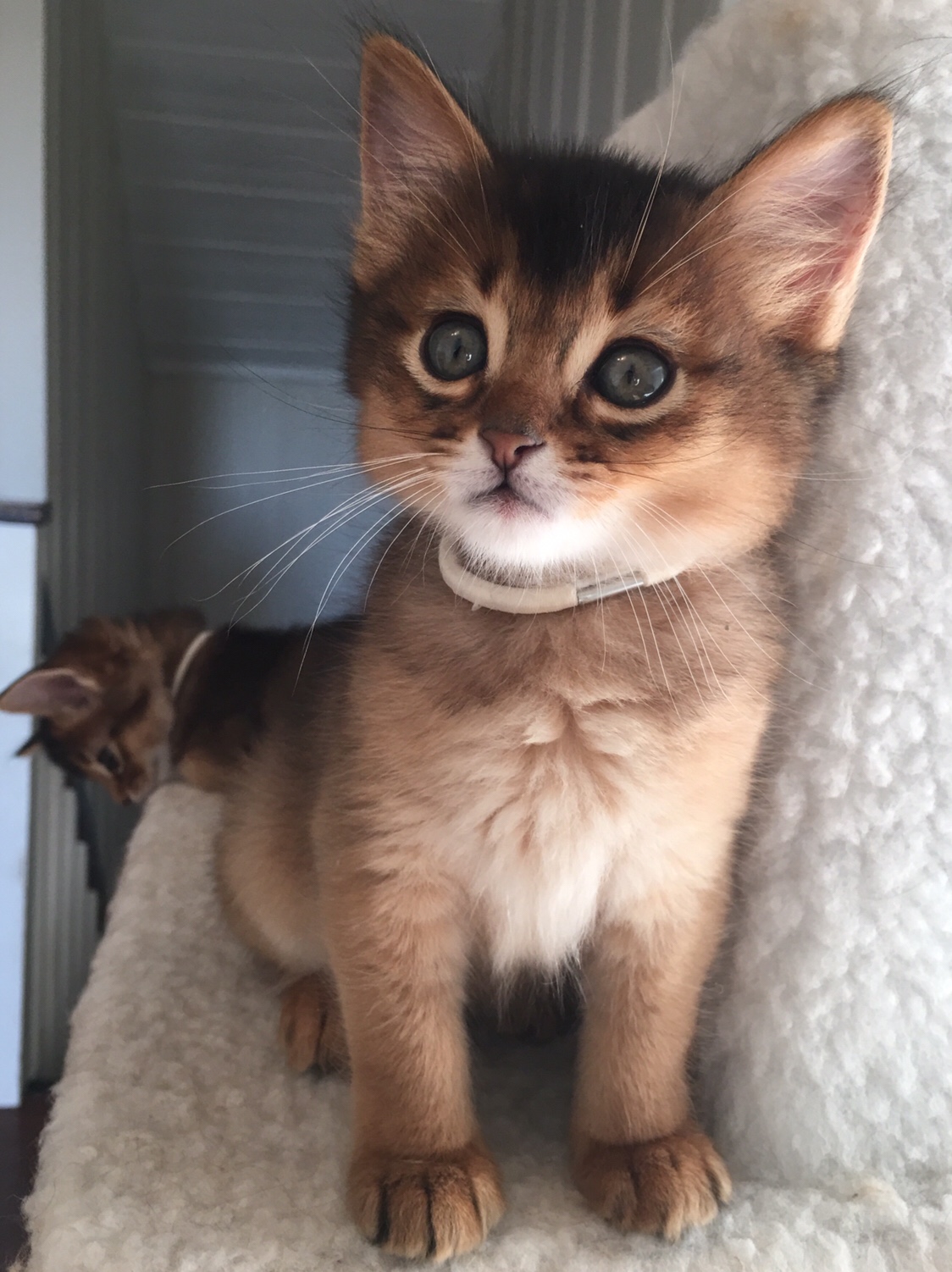Somali og abyssiner er svært intelligente og kjælne katter. De elsker å være med der det skjer noe og delta i familiens liv. De er også gode til å tilpasse seg husets og familiens rytme; morgenstund, når folk kommer hjem fra skole og jobb, kveldskos osv. De vil gjerne sitte på fanget og kose, eller også gjerne på skulderen din men du leser avisen eller ser på TV. De elsker også å sitte høyt oppe. De har fantastisk kroppskontroll og kan hoppe rett opp til den øverste hyllen de finner. Der ligger de og følger med på det som skjer under dem.