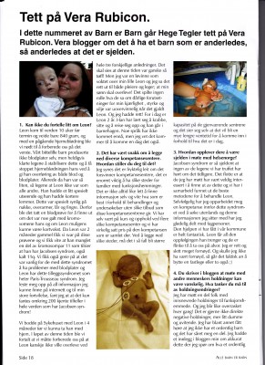 Det er utrolig vondt når folk sier til henne at du får sikkert et ordentlig barn også… Akkurat som ikke Leon er et ordentlig barn, han må verken trekkes opp, eller blåses opp, sier Vera i boka.