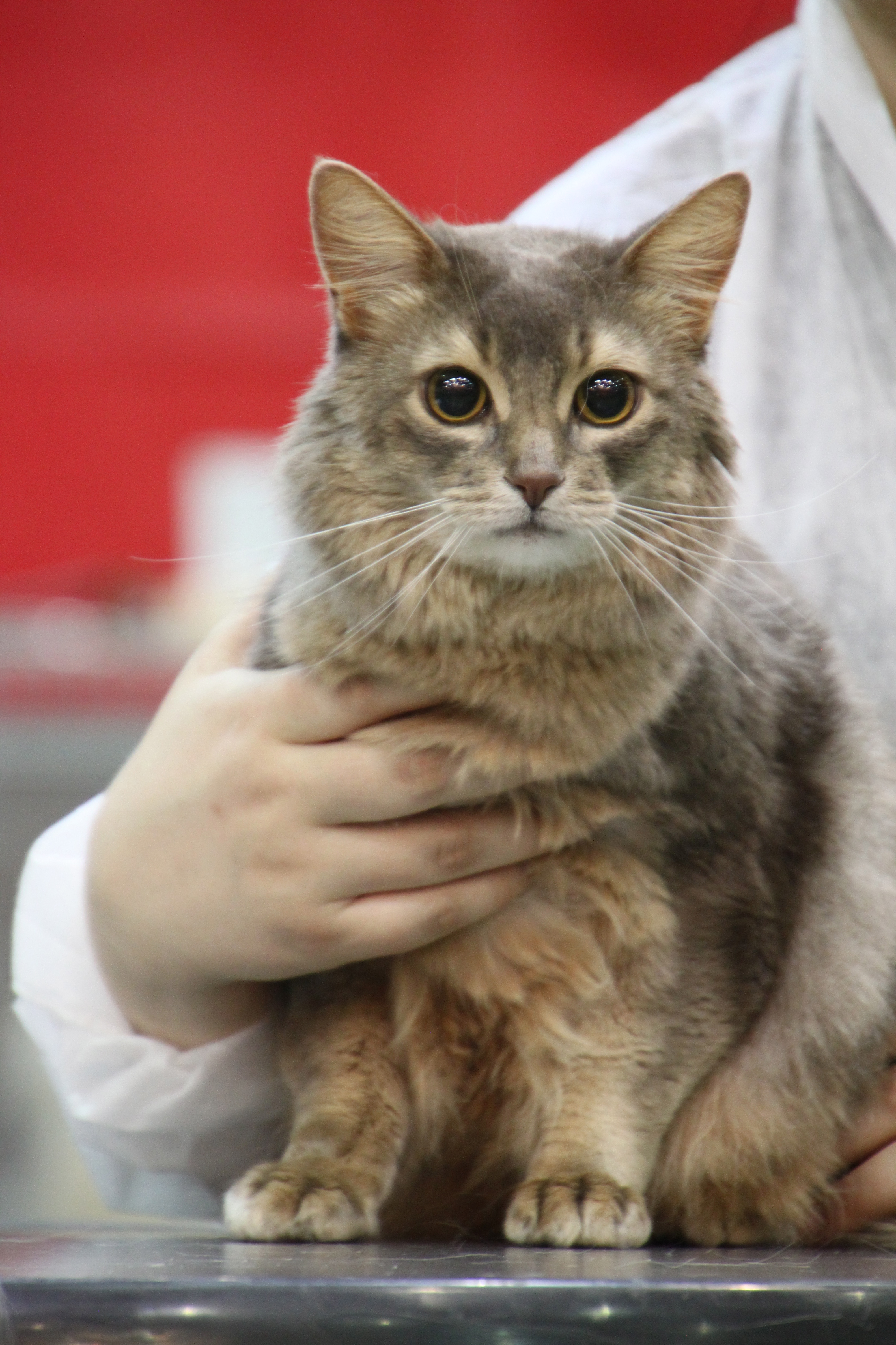 Those of you who have shown blue, know that the first thing the judge does on these variants is to separate the fur to see if the undercoat has a warm enough colour to the undercoat. Unfortunately most blue Abyssinians and Somali are given the comment “undercoat too cold”, as many of them are completely white in the undercoat. This easily leads to the follow-up question; are they really blue? Many suspect they in reality are silver. This is naturally a problem for breeders who wish to concentrate on breeding blue. But I suppose that selective breeding will give results as it has in so many other breeds. Only when somebody has it as a goal to create the best possible, will the warm undercoat become a reality. It will take many years, many cat-generations and possibly also a human generation or two.