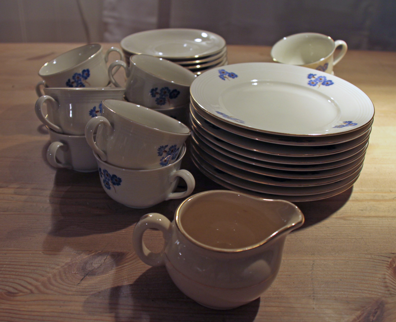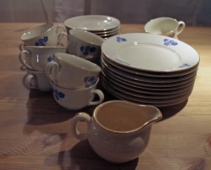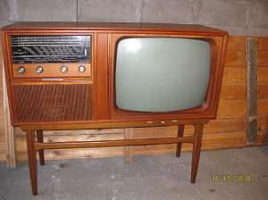 Slik kunne det se ut i pene hjem på 1950- og 1960-tallet. En seksjon lik denne ga jeg bort for noen år siden. Legg spesielt merke til dekorasjonene på glassdørene, svært typisk for denne tidsepoken. (Bildet er lånt fra Norsk Folkemuseums nettsider.)