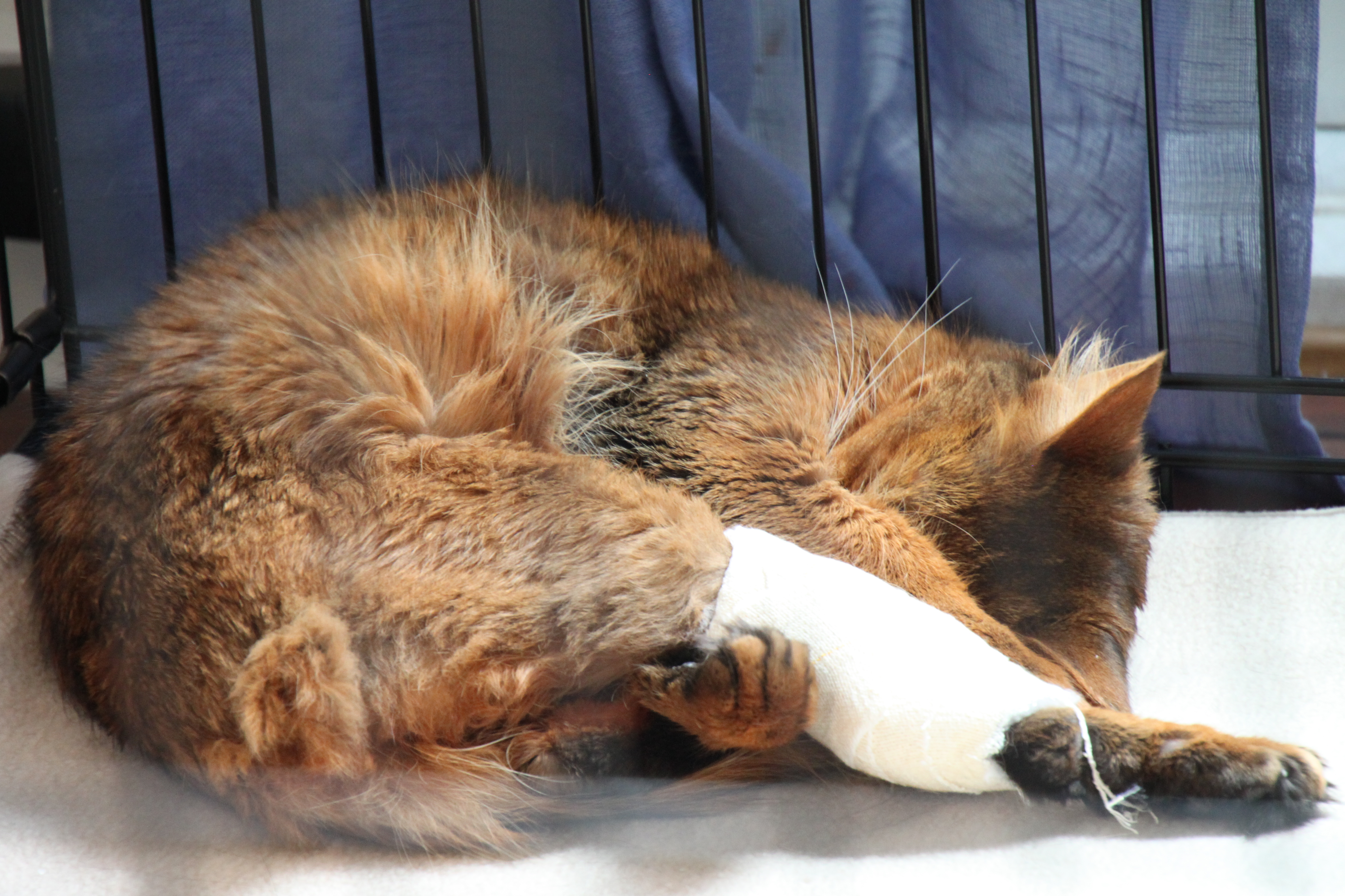 Når det gjelder Dragonfly så er han nå akkurat i fertil alder, men han vil nok ikke bli holdt så lenge ukastrert, siden jeg jo ikke har andre hunnkatter jeg kan pare han med. Både han og de to viltfargede hunnkattene mine er bærere av PRA, og kan derfor ikke pares med hverandre. Så har du en hunnkatt som kan passe til Dragonfly og som ikke er bærer av PRA, så må du nok skynde deg og gi meg beskjed 🙂